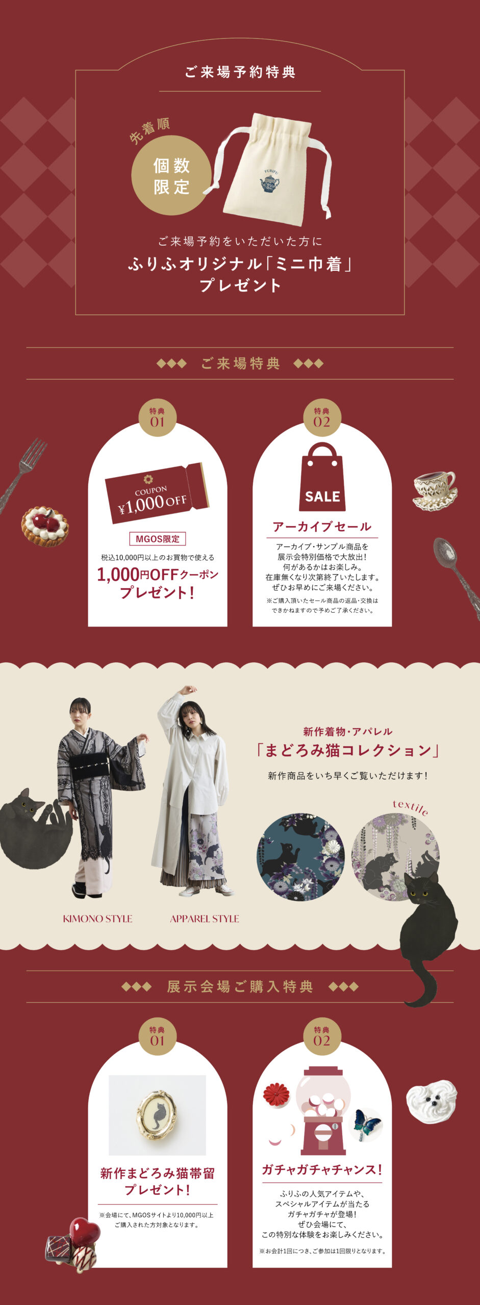 ぜひ新作着物・お洋服をゆっくりとご覧いただきながら、 ふりふの世界観をご体感ください。